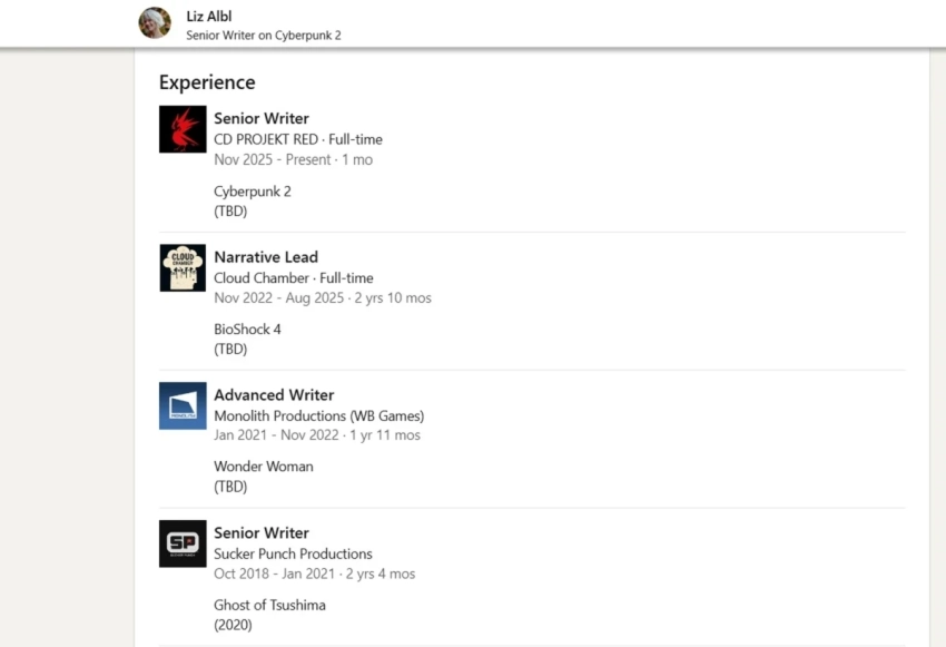 Теперь Альбл работает в CD Projekt Red над Cyberpunk 2. К польской студии она присоединилась в ноябре этого года, заняв должность старшего сценариста.