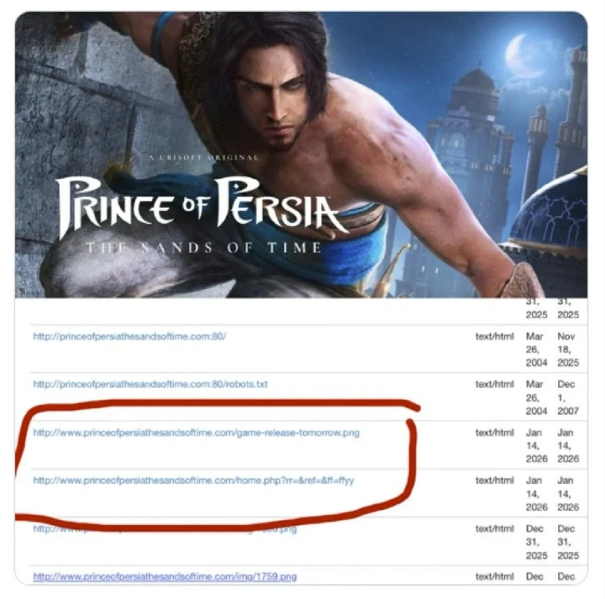 Обложка: постер ремейка Prince of Persia: The Sands of TimeРемейк Prince of Persia: The Sands of Time (2026) может выйти уже в ближайшее время. Намёк на это был найден внутри сайта игры — якобы 14 января он получил очередное обновление (они частенько будоражат фанатов) с приватной картинкой, название которой говорит о «завтрашнем» релизе. И на этот счёт у геймеров есть две теории.