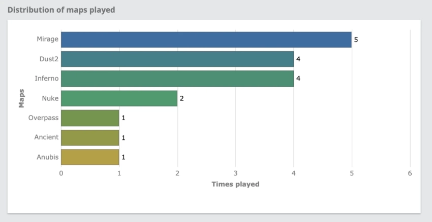 • 2-3-е места: В тройку лидеров также вошли Dust2 и Inferno. На каждой из них команды провели по 4 встречи.