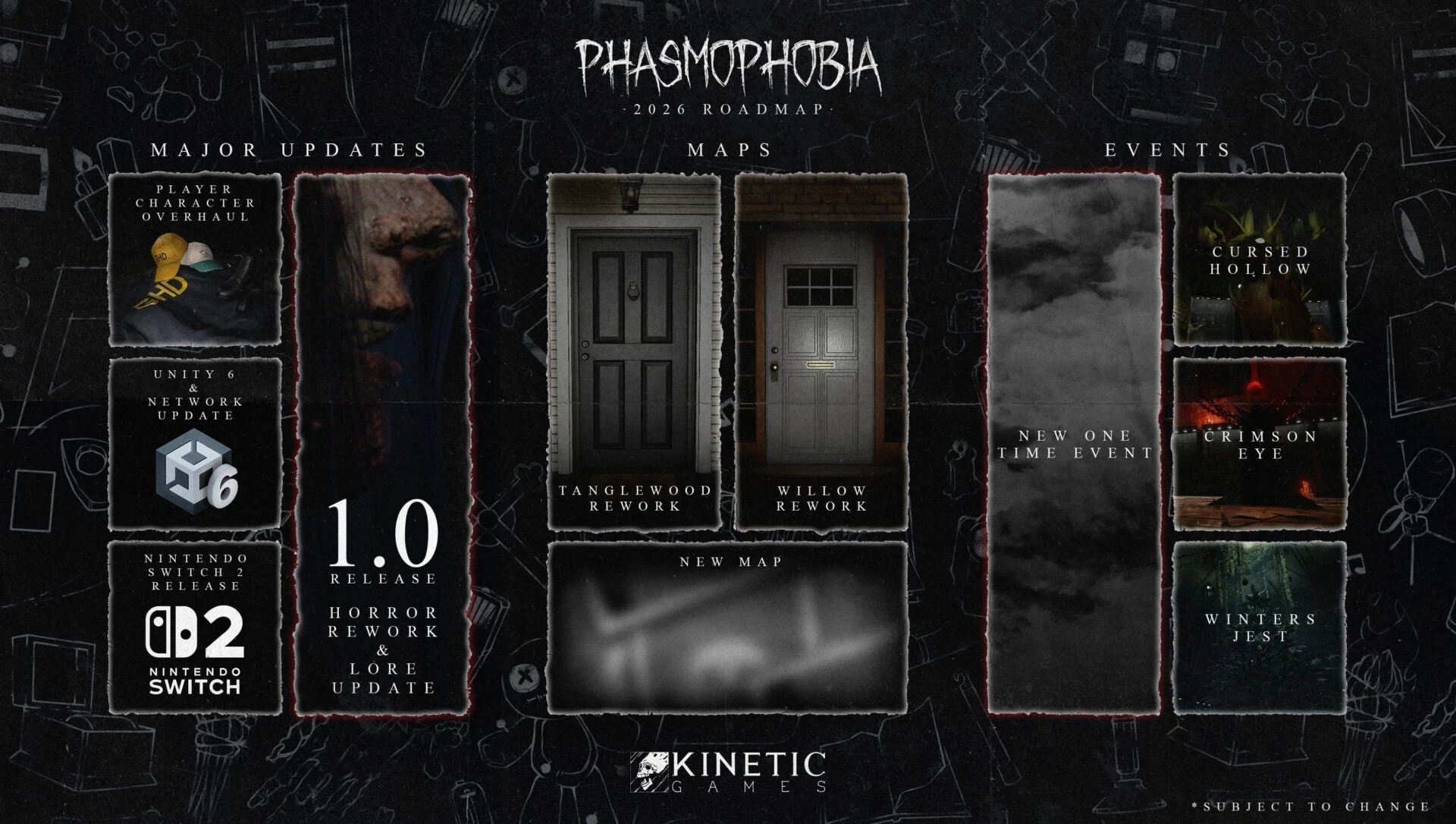 Вместе с выходом версии 1.0 выйдет и большое обновление Horror 2.0, включающее в себя новых призраков и дополнительные игровые механики. Последние, по заверениям создателей, призваны сделать геймплей более напряжённым.