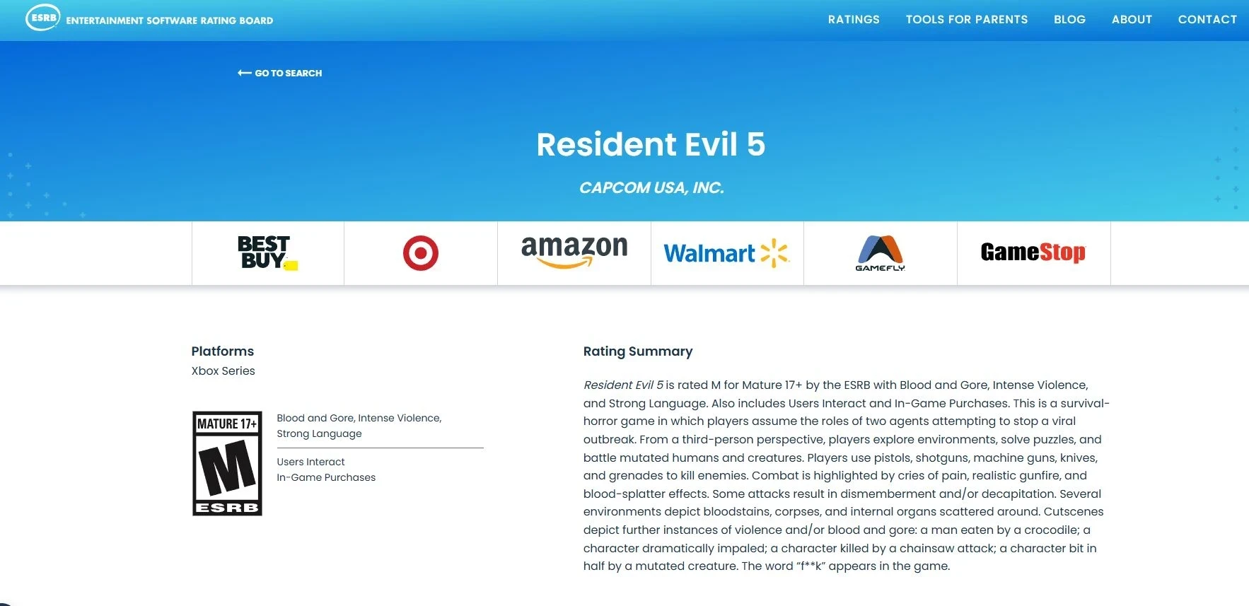Главная » Статьи » Намёк на ремейк Resident Evil 5 нашли на сайте ESRB